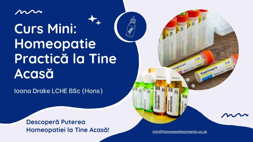 Învață cum să folosești homeopatia în viața de zi cu zi pentru a-ți susține sănătatea naturală și a familiei tale. Cursul nostru mini îți oferă tot ce ai nevoie: de la administrarea corectă a remediilor și crearea propriei truse homeopatice, până la selectarea celor mai potrivite remedii pentru peste 30 de afecțiuni comune.